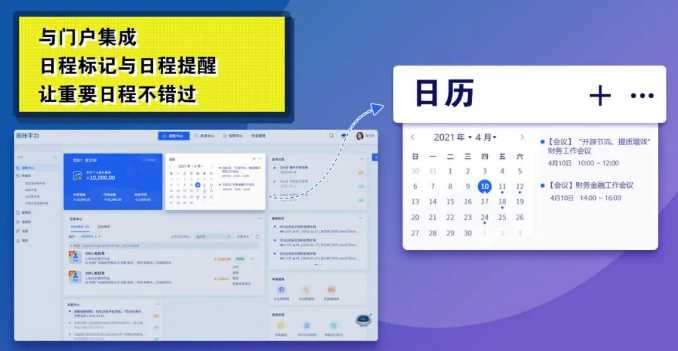與門戶集成,日程標(biāo)記與日程提醒,雙重保證,讓重要日程不再錯(cuò)過;