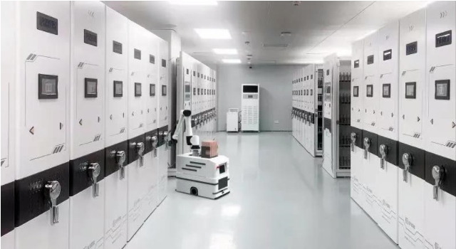 此外,還通過引入智能制造、物聯(lián)網(wǎng)技術(shù),結(jié)合票據(jù)交收設(shè)備、裝盒設(shè)備、AGV機(jī)器人、智能密集架、智能檔案盒等智能終端,實現(xiàn)實物檔案從交收、裝盒、歸檔全過程的無人自動化管理,并與線上電子檔案對接匹配,強(qiáng)化一體化管理。
