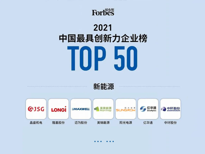 福布斯中國日前發(fā)布2021年中國最具創(chuàng)新力企業(yè)榜單,共計(jì)提名了50家最具創(chuàng)新力并持續(xù)成長的中國企業(yè)。陽光電源憑借在新能源領(lǐng)域多年的持續(xù)穩(wěn)健運(yùn)營、領(lǐng)先的科創(chuàng)實(shí)力登陸榜單。