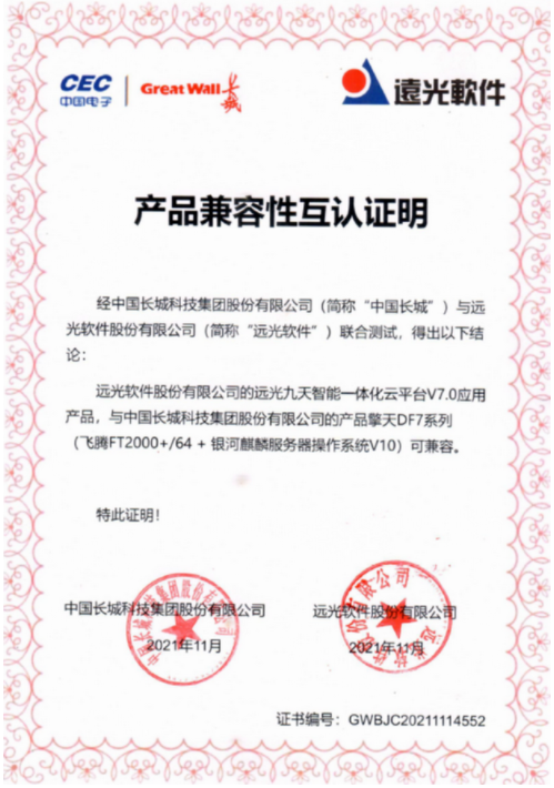 據(jù)遠光軟件相關(guān)負責人介紹,遠光九天云平臺以“使用國產(chǎn)化的工具研發(fā)國產(chǎn)化的系統(tǒng)運行在國產(chǎn)化的基礎(chǔ)設(shè)施之上”為目標,已經(jīng)和信創(chuàng)路線中的絕大部分廠商完成了互信認證,包括華為鯤鵬服務(wù)器芯片、銀河麒麟服務(wù)器操作系統(tǒng)、統(tǒng)信桌面操作系統(tǒng)、達夢數(shù)據(jù)庫、中創(chuàng)中間件、360安全瀏覽器等,實現(xiàn)全棧式國產(chǎn)化適配,累計獲得兼容性互認證書達35份。全面達到國產(chǎn)軟硬件平臺的通用兼容性要求,性能及可靠性得到全面驗證。階段性成果標志著遠光九天云平臺已構(gòu)建起“全棧式、全過程、全方位”的信創(chuàng)生態(tài)體系,在全面支持國產(chǎn)化方面邁出了關(guān)鍵一步。
