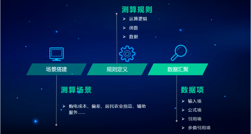 遠(yuǎn)光軟件“代理購電測算”系統(tǒng)的基礎(chǔ)設(shè)計(jì)理念由三個詞構(gòu)成:數(shù)據(jù)、規(guī)則、場景。