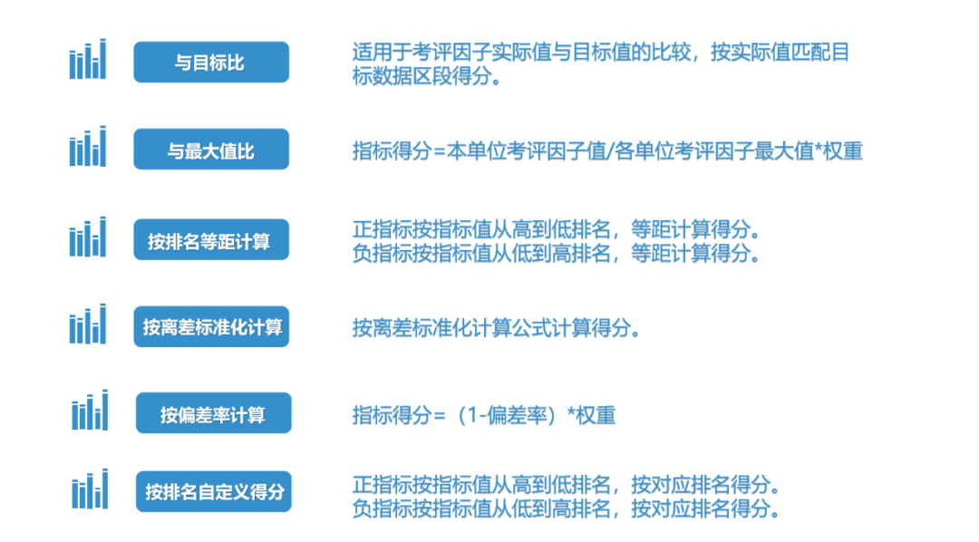 3支持考核評價(jià)智能化遠(yuǎn)光內(nèi)模市場管理系統(tǒng)支持多角度構(gòu)建考評指標(biāo)體系,基于數(shù)據(jù)中臺財(cái)務(wù)快報(bào)數(shù)據(jù)、模擬利潤測算數(shù)據(jù)、目標(biāo)利潤核定數(shù)據(jù)等原子指標(biāo)自動生成考評指標(biāo)值,并通過得分計(jì)算函數(shù)(偏差率計(jì)算函數(shù)、離差標(biāo)準(zhǔn)化計(jì)算函數(shù)等)由系統(tǒng)自動計(jì)算各單位排名得分。