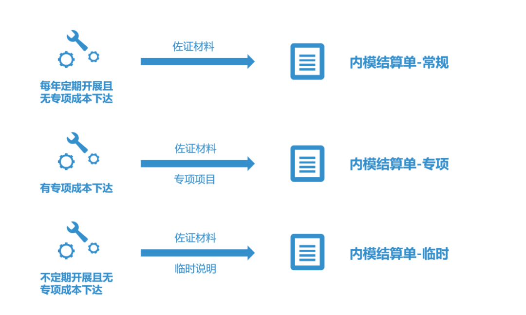 1、支持三種業(yè)務(wù)結(jié)算類型按照業(yè)務(wù)活動開展頻率和活動開展成本的不同,系統(tǒng)提供三種類型的內(nèi)模結(jié)算單進(jìn)行填報(bào),滿足不同業(yè)務(wù)需求。