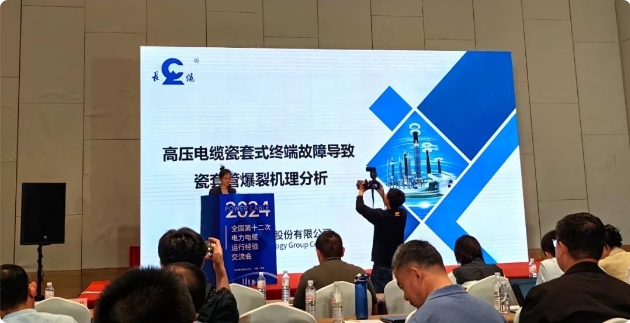 長纜科技技術(shù)代表在會場進(jìn)行《高壓電纜瓷套式終端故障導(dǎo)致瓷套管爆裂機(jī)理分析》主題分享,與現(xiàn)場專家、嘉賓共同探討電纜線路安全運(yùn)行重要問題,以期共同促進(jìn)原創(chuàng)技術(shù)攻關(guān)和產(chǎn)業(yè)鏈高質(zhì)量發(fā)展。