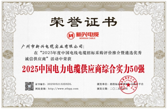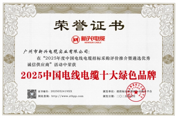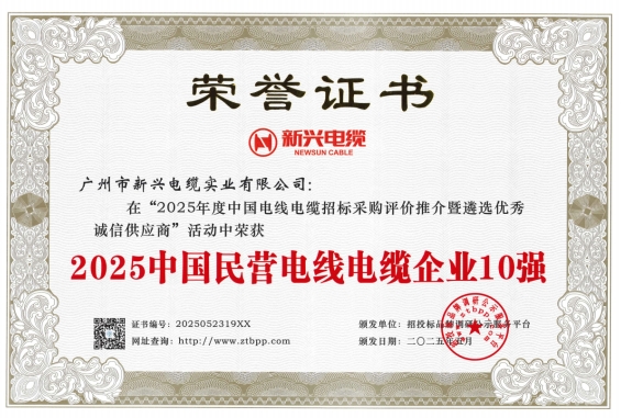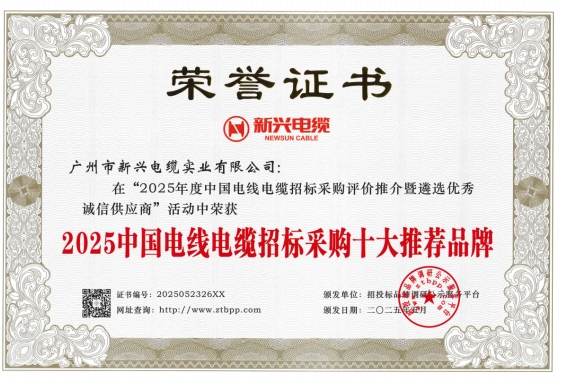 近日,在招投標(biāo)品牌調(diào)研公示服務(wù)平臺主辦的第四屆“2025年度中國電線電纜招標(biāo)采購評價推介暨遴選優(yōu)秀誠信供應(yīng)商活動”中,新興電纜憑借卓越的產(chǎn)品質(zhì)量和技術(shù)實力,獲得五項行業(yè)重要認(rèn)可:"2025中國電力電纜供應(yīng)商綜合實力50強(qiáng)"、"2025中國民營電線電纜企業(yè)10強(qiáng)"、"2025中國電線電纜招標(biāo)采購十大推薦品牌"、"2025中國電力電纜十大品牌"和"2025中國電線電纜十大綠色品牌"。