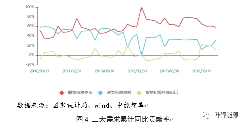 同時(shí),從消費(fèi)、投資和國外三大需求累計(jì)同比對(duì)GDP貢獻(xiàn)率看,消費(fèi)對(duì)經(jīng)濟(jì)增長(zhǎng)的貢獻(xiàn)率逐步成為中流砥柱,而投資形成貢獻(xiàn)率趨于穩(wěn)定。