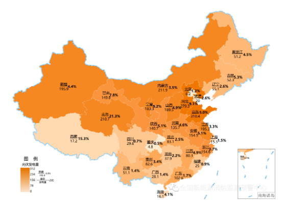 各地區(qū)2021年累計光伏發(fā)電量(億千瓦時)及占本地區(qū)總發(fā)電量比重