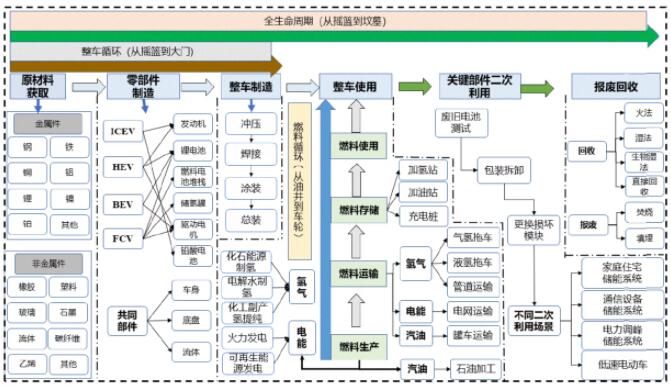在這種評估思路下,汽車原材料的獲取、制造裝配、運(yùn)行使用、關(guān)鍵部件二次利用直至報(bào)廢回收過程中所產(chǎn)生的碳排放都應(yīng)該考慮在內(nèi)。