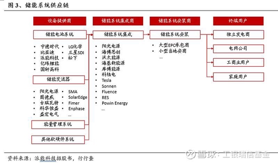 儲能產(chǎn)業(yè)鏈在電力體系中十分重要,諸多環(huán)節(jié)之間存在交集。儲能產(chǎn)業(yè)鏈上游主要包括電池原材料及生產(chǎn)設(shè)備供應(yīng)商等;中游主要為電池、電池管理系統(tǒng)、能量管理系統(tǒng)以及儲能變流器供應(yīng)商;下游主要為儲能系統(tǒng)集成商、安裝商以及終端用戶等。產(chǎn)業(yè)鏈涉及的環(huán)節(jié)眾多,從電池制造到EPC施工,再到各種場景下運(yùn)營,電池制造環(huán)節(jié)與動力電池企業(yè)存在交集,EPC施工環(huán)節(jié)與光伏、風(fēng)電施工企業(yè)存在交集,運(yùn)營商和電網(wǎng)企業(yè)存在交集。