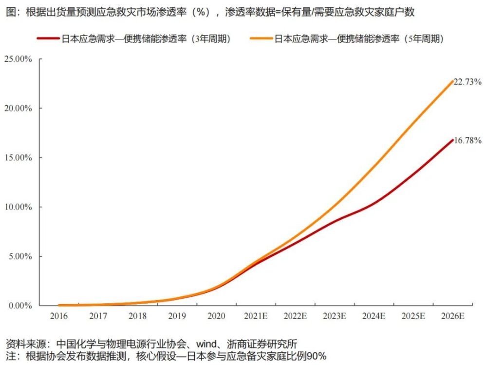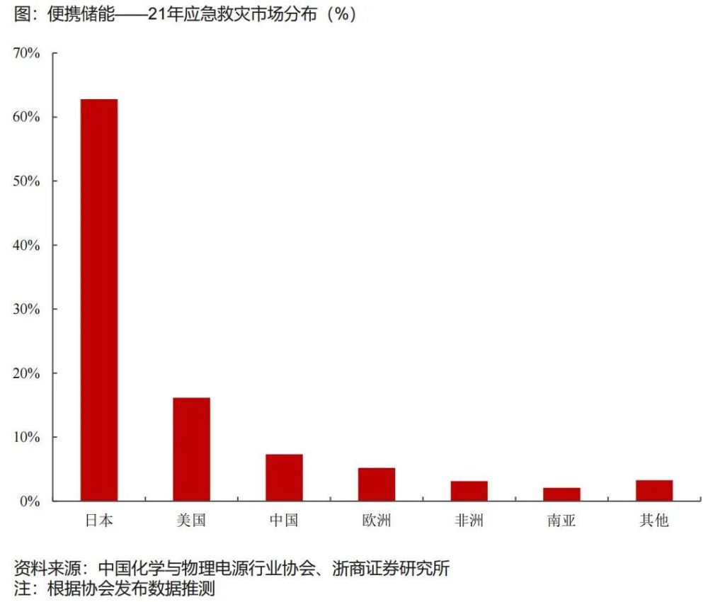 此外,在日本市場,21年應(yīng)急救災(zāi)需求出貨量占其總便攜儲(chǔ)能市場的87%。具體如下圖所示: