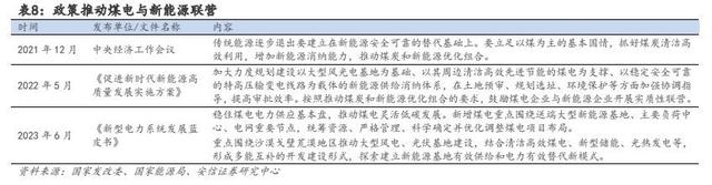 轉(zhuǎn)型不止囿于眼前的煤電,更在于牽手新能源。隨著我國(guó)碳達(dá)峰、碳中和目標(biāo)的提出,安全、清潔、經(jīng)濟(jì)的階段性不平衡問(wèn)題日益突出,煤電與新能源間的發(fā)展矛盾逐漸成為新型電力系統(tǒng)建設(shè)中的重要議題,國(guó)家層面對(duì)煤電和新能源的協(xié)同發(fā)展也在進(jìn)行積極的思考與研究。2021 年 12 月中央經(jīng)濟(jì)工作會(huì)議,國(guó)家首次提出要立足以煤為主的基本國(guó)情,抓好煤炭清潔高效利用,增加新能源消納能力,推動(dòng)煤炭和新能源優(yōu)化組合。2022 年 5 月,國(guó)家發(fā)改委、國(guó)家能源局聯(lián)合印發(fā)《促進(jìn)新時(shí)代新能源高質(zhì)量發(fā)展實(shí)施方案》,提出加大力度規(guī)劃建設(shè)大型風(fēng)光電基地,并按照推動(dòng)煤炭和新能源優(yōu)化組合的要求,鼓勵(lì)煤電企業(yè)與新能源企業(yè)開(kāi)展實(shí)質(zhì)性聯(lián)營(yíng)。政府指導(dǎo)意見(jiàn)從“推動(dòng)煤炭和新能源優(yōu)化組合”到“鼓勵(lì)煤電企業(yè)與新能源企業(yè)開(kāi)展實(shí)質(zhì)性聯(lián)營(yíng)”,方向更加明確、要求更為具體,為下一步產(chǎn)業(yè)結(jié)構(gòu)優(yōu)化調(diào)整指明道路。