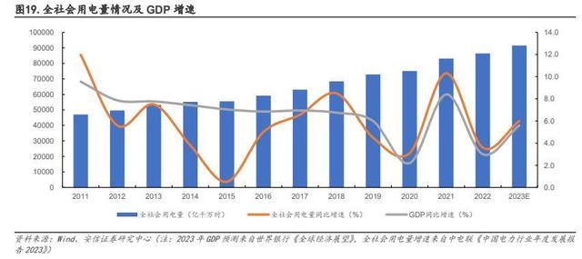 供給側(cè)改革“后遺癥”顯現(xiàn),階段性缺電頻發(fā)。2021 年以來(lái)的三年里,我國(guó)局部地區(qū)出現(xiàn)了電力供應(yīng)偏緊和短暫缺電的情況,先有 2021 年 8-9 月遼寧、吉林、江蘇、浙江、廣東等地相繼發(fā)布有序用電或限電通知,后有 2022 年夏季高溫天氣導(dǎo)致水電供應(yīng)持續(xù)受限,疊加居民用電負(fù)荷增加,各地為緩解用電高峰時(shí)段供電壓力再次發(fā)布限電通知,其中云南省電解鋁企業(yè)更是在 2022 年 9 月到 2023 年 2 月間三次收到限電通知。背后反映出來(lái)的是供給側(cè)改革后煤炭、火電的長(zhǎng)期投資萎縮導(dǎo)致的產(chǎn)能不足現(xiàn)象,與此同時(shí) 2015 年后我國(guó)全社會(huì)用電量增速回升,疊加 2022 年極端高溫導(dǎo)致的空調(diào)降溫用電需求激增,電力供需的矛盾逐漸顯現(xiàn)。展望“十四五”后三年,根據(jù)《新形勢(shì)下“十四五”后三年中國(guó)電力需求形勢(shì)研判》(2023年發(fā)表)分析,“十四五”后三年中國(guó)用電量仍有較大增長(zhǎng)空間,技術(shù)進(jìn)步、能源轉(zhuǎn)型、電力市場(chǎng)、氣候氣溫等因素對(duì)用電增長(zhǎng)影響將增強(qiáng),且最大負(fù)荷受產(chǎn)業(yè)結(jié)構(gòu)調(diào)整、空調(diào)與電采暖設(shè)備推廣、氣候氣溫等影響將更為突出,增速將高于用電增速,或進(jìn)一步增大電力保供壓力。