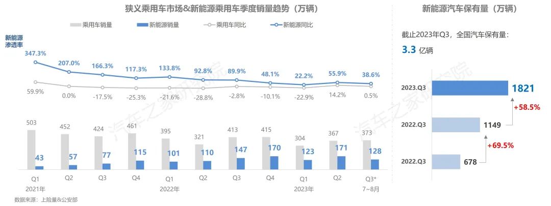 今年以來,國(guó)家層面針對(duì)汽車行業(yè)轉(zhuǎn)型升級(jí)的政策頻出,使得中國(guó)車企在新能源的浪潮中迎來重大的發(fā)展機(jī)遇。此外,商務(wù)部推動(dòng)“百城聯(lián)動(dòng)”汽車節(jié)和“千縣萬鎮(zhèn)”新能源汽車消費(fèi)季效果顯現(xiàn),這都無疑在讓中國(guó)的汽車產(chǎn)業(yè)從生產(chǎn)端與消費(fèi)端兩個(gè)方向,呈現(xiàn)出新能源汽車市場(chǎng)爆發(fā)式增長(zhǎng)。目前,中國(guó)新能源汽車保有量已經(jīng)突破1800萬輛,今年1-8月新能源乘用車更是取得超420萬輛銷量的成績(jī),同比增長(zhǎng)逾三成,市場(chǎng)滲透率持續(xù)保持超30%的高水平發(fā)展。