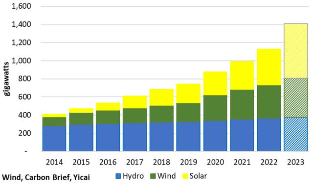 圖2:中國(guó)水電、風(fēng)電和太陽(yáng)能發(fā)電量(單位:千兆瓦)