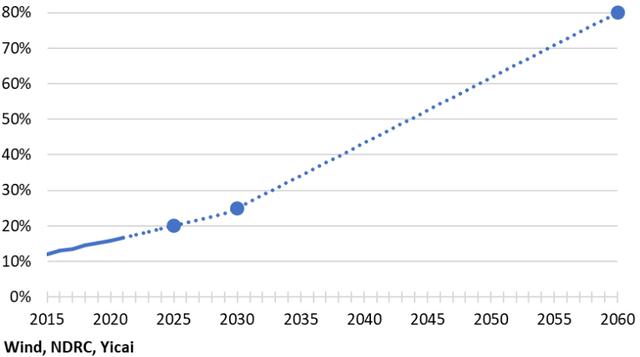 圖6:非化石燃料在中國(guó)能源消費(fèi)中的占比