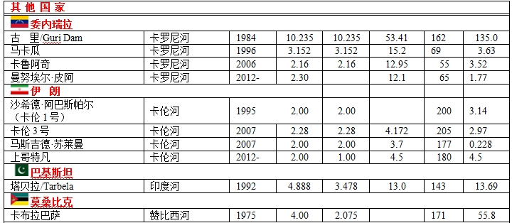 梯級水電站是世界上發(fā)展水力發(fā)電的一個重要的獲取電力的方式。在制作下表時,我把相同一河流的水電站歸納在一起,您可以看出,世界上許多河流都是梯級水電站。