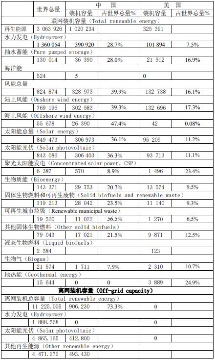 本報(bào)告的數(shù)據(jù)來自IRENA 2022年報(bào)告,由于中國和美國是世界上最大的經(jīng)濟(jì)體,跟世界各國一樣都在追求“Net zero by 2050”。 本文匯總兩大經(jīng)濟(jì)體在再生能源方面的進(jìn)展,單位使用的是裝機(jī)容量,以MW表示。