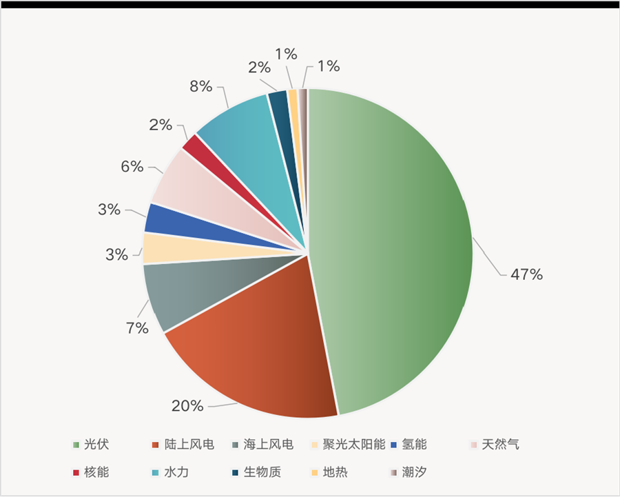 該機構(gòu)還預測,到2050年,光伏將在全球電力裝機中的占比達到47%,風電占比為27%。
