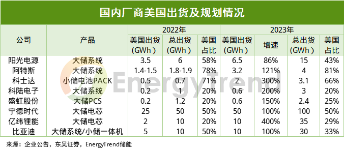 圖:國內(nèi)廠商美國出貨及規(guī)劃情況