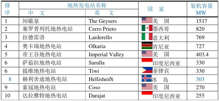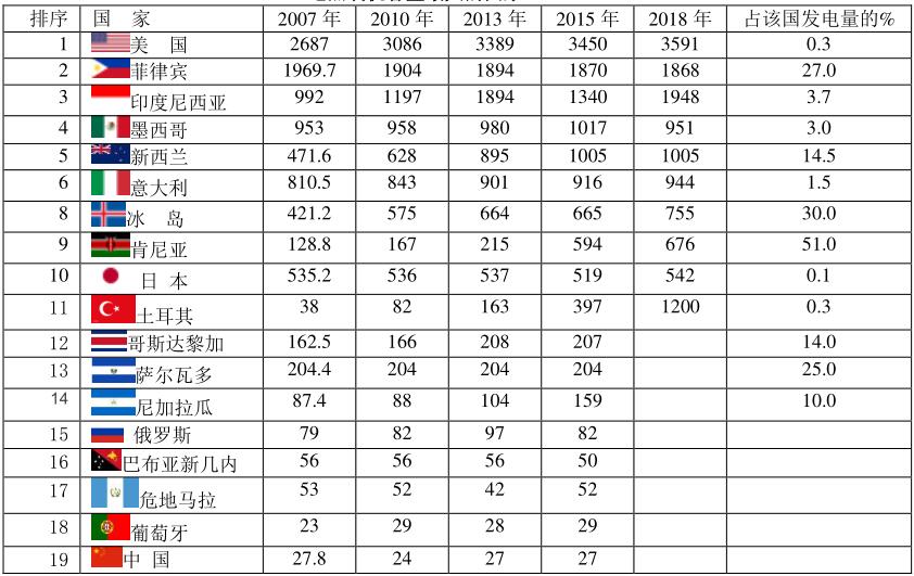 地?zé)嵫b機(jī)容量最大的國家(MW)