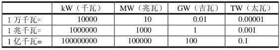 1 TWh=10億千萬(wàn)時(shí) ; 1萬(wàn)千瓦=0.01GW ; 1 GW=100萬(wàn)千瓦