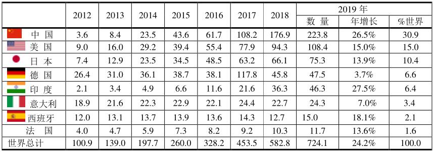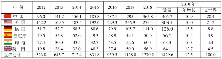 根據(jù)BP 2020的報(bào)告,2019年全球太陽(yáng)能發(fā)電占全球發(fā)電總量的724.1/27004.7=2.7%,占再生能源發(fā)電總量的724.1/7261.3=10.0%,其份額較少,但進(jìn)展較快。