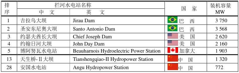 中國(guó)湖北省的三峽水電站仍然是世界上最大的水電站,總裝機(jī)容量為22.50 GW;位于巴西和巴拉圭的伊泰普水電站是世界第二大水電站,裝機(jī)容量為14.00 GW。不過(guò),伊泰普水電站所處的巴拉那河水量豐沛且季節(jié)分布相對(duì)均衡,幾乎可以全年滿(mǎn)負(fù)荷發(fā)電;而三峽水電站則每年都會(huì)經(jīng)歷約6個(gè)月的枯水期,從而限制了其發(fā)電量。