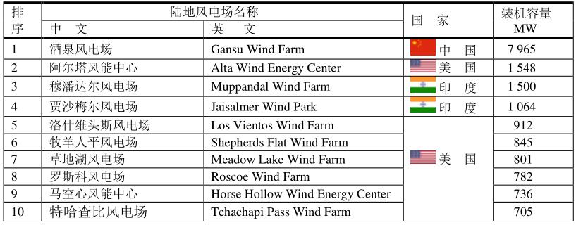 全球十大陸地風(fēng)電場(chǎng)