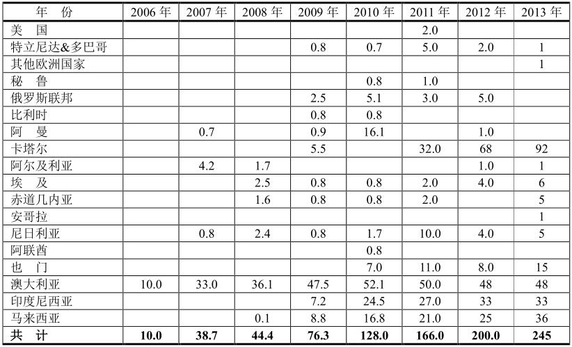 2006~2013年中國(guó)LNG進(jìn)口量(億立方米/108m3)