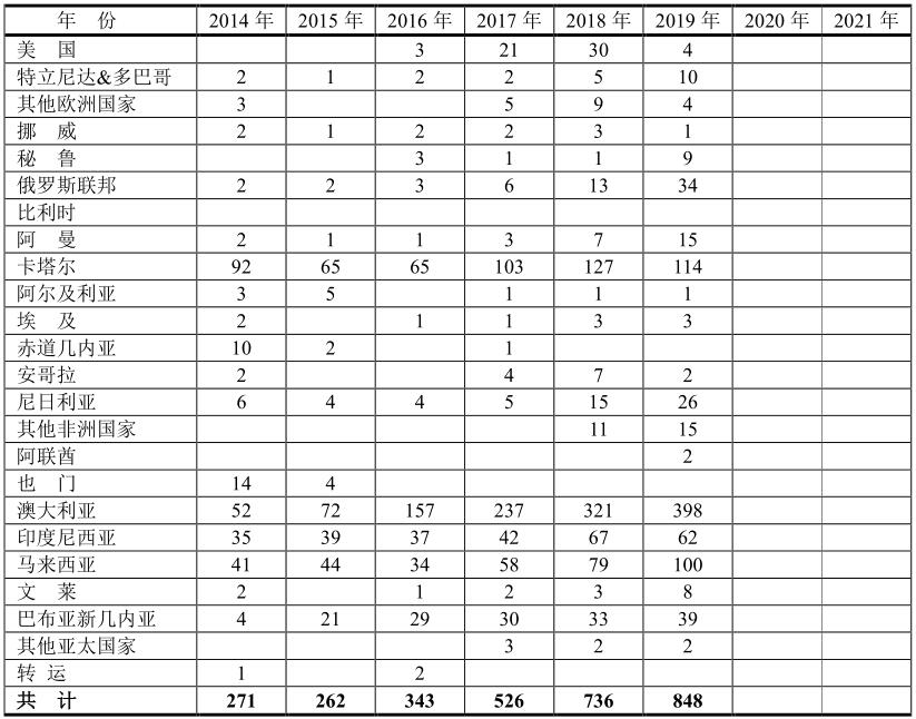 向中國(guó)銷(xiāo)售LNG約20個(gè)國(guó)家,但是主要的有卡塔爾、澳大利亞、印度尼西亞和馬來(lái)西亞等,這四個(gè)國(guó)家都是按照長(zhǎng)期合同執(zhí)行的,即按“照付不議”付款形式。其他的國(guó)家多數(shù)按照短期合同執(zhí)行。