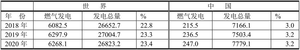 就全球發(fā)電而論,2020年燃煤發(fā)電居首位,占全球總量的9421.4/26823.2=35.1%;燃?xì)獍l(fā)電只居全球第二位,占全球總量的6268.1/26823.2=23.4%。