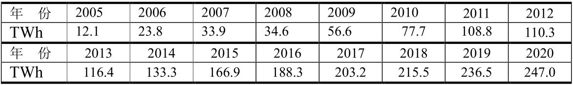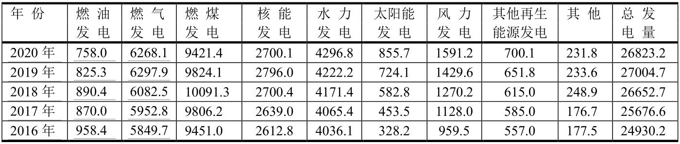中國各種能源發(fā)電量(單位:TWh)