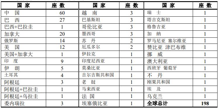 ▲ 世界上水電站裝機(jī)容量在1000MW以上的有198座,其中中國占據(jù)了60座,居世界總數(shù)的60/198=30%。其次為巴西、加拿大、俄羅斯。