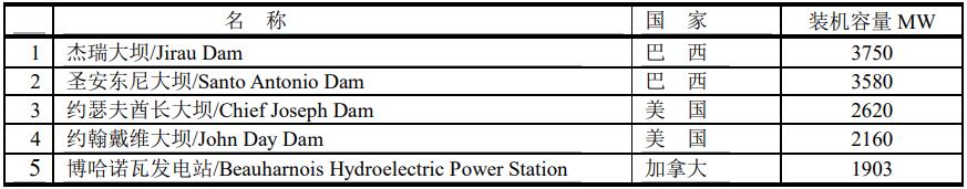中國投產(chǎn)的裝機(jī)容量在1000MW以上的水力發(fā)電站