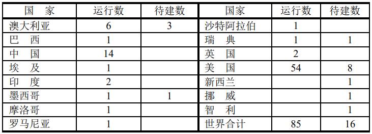 目前全球裝機(jī)容量大于250 MW的陸上風(fēng)電場(chǎng)有85個(gè)風(fēng)電場(chǎng),待建的風(fēng)電場(chǎng)有16個(gè)陸上風(fēng)電場(chǎng)已經(jīng)立項(xiàng)。