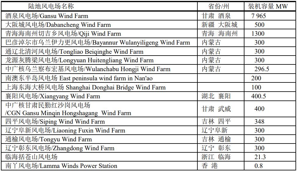 中國(guó)大型陸地風(fēng)電場(chǎng)
