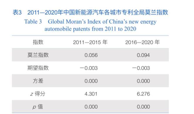 因此,由上述分析可知,新能源汽車企業(yè)是當(dāng)前中國(guó)進(jìn)行新能源汽車創(chuàng)新活動(dòng)的主體。但一方面中國(guó)新能源汽車產(chǎn)業(yè)發(fā)展仍處于初期,并未形成相對(duì)健全的產(chǎn)業(yè)體系;另一方面則是新能源汽車的研發(fā)有較高的技術(shù)門檻,企業(yè)間的合作難以開展。中國(guó)新能源汽車產(chǎn)業(yè)創(chuàng)新網(wǎng)絡(luò)的結(jié)網(wǎng)比例及其下降趨勢(shì)也表示,大部分新能源汽車的研發(fā)基本由企業(yè)獨(dú)立完成。這使得中國(guó)新能源汽車在2011—2020年并未產(chǎn)生顯著的溢出效應(yīng),僅在長(zhǎng)江三角洲城市群地區(qū)有一定的創(chuàng)新活動(dòng)的集聚現(xiàn)象。