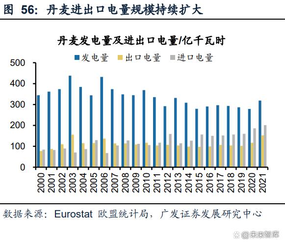 丹麥依賴鄰國解決風(fēng)光消納問題。以丹麥為例,丹麥鄰近瑞典和挪威兩大水電富余 國家,可以聯(lián)合兩國水電作為短期靈活性來源,丹麥大力發(fā)展電力跨境交易市場,有效地從市場層面促進(jìn)了風(fēng)電的積極消納與波動(dòng)平衡。風(fēng)電能夠在豐富時(shí)期,利用 市場價(jià)格優(yōu)勢向境外鄰國輸送;低谷時(shí)期,由于價(jià)格劣勢,可從境外購買相對廉價(jià) 電力,這種電力的跨境交易,本質(zhì)上仍是新能源與傳統(tǒng)能源的一體化調(diào)節(jié),導(dǎo)致丹 麥的進(jìn)口電量和出口電量規(guī)模均較大。我國幅員遼闊、資源分布不均,亦可借鑒電 力的跨區(qū)域調(diào)度和調(diào)節(jié)。