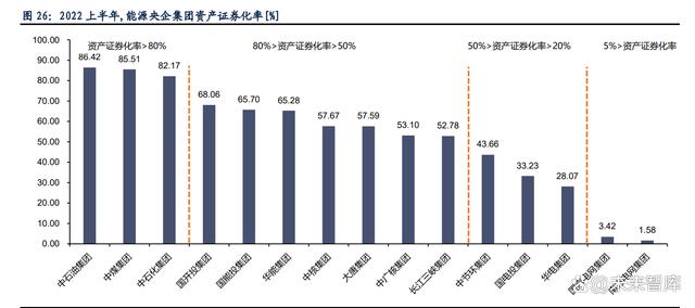 從集團(tuán)資產(chǎn)證券化率的角度,國網(wǎng)集團(tuán),南網(wǎng)集團(tuán)大部分資產(chǎn)尚未上市,集團(tuán)證券化率分別 為 3.42%和 1.58%。雖然集團(tuán)主業(yè)電網(wǎng)業(yè)務(wù)上市可能較小,但仍有如抽水蓄能、配網(wǎng)節(jié)能、 綜合儲(chǔ)能、清潔能源發(fā)電等業(yè)務(wù)上市的相關(guān)機(jī)會(huì),考慮到其目前較低的資產(chǎn)證券化率,相關(guān) 業(yè)務(wù)的資產(chǎn)注入值得關(guān)注。中節(jié)能集團(tuán),國電投集團(tuán),華電集團(tuán)的資產(chǎn)注入上市公司的空間 較大(<35%)。中石油集團(tuán),中煤集團(tuán),中石化集團(tuán)的資產(chǎn)證券化率分別為 86.42%,85.51%,82.17%,大部分資產(chǎn)已上市。但考慮到集團(tuán)主業(yè)的資產(chǎn)體量,仍有部分資產(chǎn)可能注入核心 平臺(tái)。