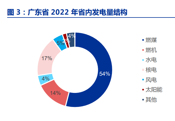 2022年是1439號文發(fā)布后電力市場運行的第一個完整年,以廣東省為例,廣東省 2022 年累計發(fā)受電量 7616 億千瓦時,其中外省送電 1772 億千瓦時,本地電源發(fā)電量 5844 億 千瓦時,從交易電量來看,2022 年廣東省總共完成交易電量 5309 億元,占本省機(jī)組發(fā)電 量的比例超過 90%,其中直接交易電量 2986 億千瓦時,占本身機(jī)組發(fā)電量比例為 51%。 在直接交易電量中,中長期電量 2871 億千瓦時,占比 96%,其中年度交易 2662 億千瓦時, 月度交易 223 億千瓦時,其余為周交易以及多日交易等?,F(xiàn)貨偏差電量 100 億千瓦時,但 發(fā)電側(cè)日前總成交電量達(dá)到了 3800 億千瓦時。 2022 年廣東省內(nèi)機(jī)組煤電、氣電、水電、核電、風(fēng)電和太陽能發(fā)電量分別為 3157、 829、254、1019、270、103 億千瓦時,煤電占比為 54%。但在電力市場中,煤電是絕對 主力,中長期市場交易電量 2871 億千瓦時中煤電、氣電、核電占比分別為 74.8%、20% 和 5.2%。