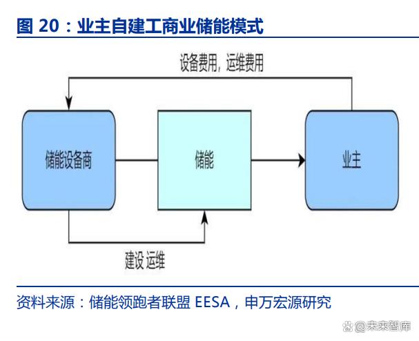 工商業(yè)儲能運營模式主要分為自建和合同能源管理模式。1)業(yè)主自建:工商業(yè)用戶 自行安裝儲能。用戶自行承擔初始投資成本及每年設備維護成本;2)合同能源管理(市 面較常見):能源服務企業(yè)協(xié)助用戶安裝儲能,能源企業(yè)投資建設儲能資產并負責后期運 維,能源服務企業(yè)與用電企業(yè)分享儲能收益,目前一般按照 90%:10%或 85%:15%等比例。 此模式對業(yè)主方而言僅需提供場地,按服務效果付費,但對投資方而言存在資金壓力、收 益波動和安全運行的風險,具備一定資金及產品服務壁壘,因此能源服務方一般以對儲能 建設和運營經驗較多的綜合能源公司、能源集團、儲能設備商為主。