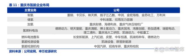 憑借優(yōu)越的地理位置,重慶市將協(xié)助四川打造氫能走廊。重慶市地理位置優(yōu)越,位于中國中部,連接東西,副產(chǎn)氫資源豐富,制氫成本低,吸引中科液氫、德燃動力、中船重工等眾多企業(yè)在重慶市發(fā)展氫能。其中,重慶當?shù)仄髽I(yè)凱瑞動力打破了國外技術壟斷,自主研發(fā)出氫氣循環(huán)泵、氫氣壓力調節(jié)器,這兩款產(chǎn)品已運用于北汽福田、億華通、德燃、明天氫能等諸多廠商。在此基礎上,還將逐步形成儲氫、回氫、供氫等“6+1”產(chǎn)品布局。并且,重慶兩江新區(qū)已引進和培育了明天氫能、德燃動力、江蘇清能等一批燃料電池產(chǎn)業(yè)的核心企業(yè),以長安汽車和上汽紅巖為代表的車企,正加快布局氫燃料電池汽車產(chǎn)業(yè)新賽道,積極推動氫能產(chǎn)品的商業(yè)化進程。