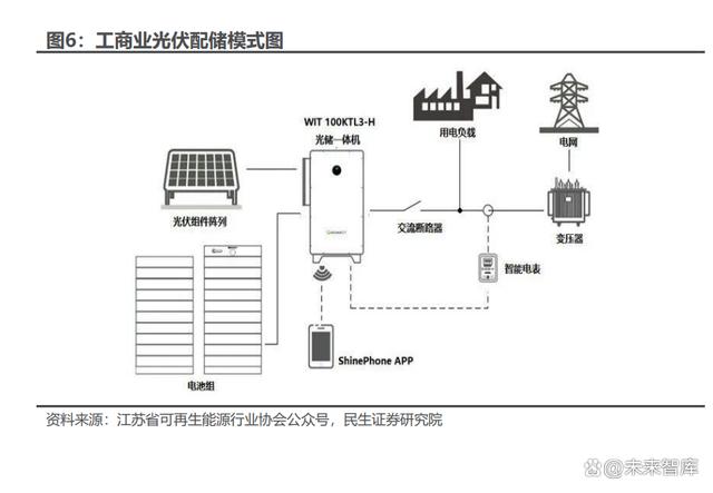 工商業(yè)用戶合理配置儲(chǔ)能可提供就地消納能力,緩解電網(wǎng)壓力。分布式光儲(chǔ)一 體化是一種布置在用戶側(cè)的集能源生產(chǎn)消費(fèi)為一體的能源供應(yīng)方式,是現(xiàn)代能源 系統(tǒng)不可或缺的重要組成部分。分布式光伏配儲(chǔ)能可在用戶端構(gòu)建小型微電網(wǎng)系 統(tǒng),在用戶遭遇限電、斷電、自然災(zāi)害等電力供給異常的情況下,可開啟離網(wǎng)狀態(tài), 保障負(fù)荷需求,不僅可以大大提高就地消納能力,減緩電網(wǎng)供電壓力,還可以抵消 安裝業(yè)主的電網(wǎng)購買電量,節(jié)省電費(fèi),備受投資者的青睞。