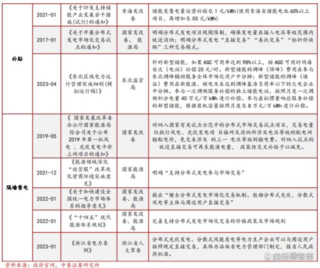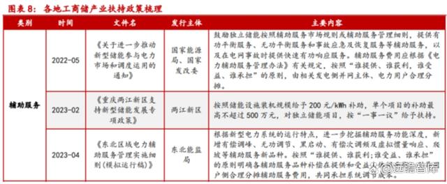 多形式扶持政策結合,鼓勵工商業(yè)儲能發(fā)展。為加快工商儲的滲透率,盡早實現(xiàn)商業(yè)化,國家和省市層 面均出臺了輔助服務、補貼、隔墻售電政策,為運營商創(chuàng)造多層次的盈利渠道。輔助服務方面,我國電 力輔助服務市場中交易品種包括調(diào)峰、調(diào)頻、無功調(diào)節(jié)、備用和黑啟動等,近年來儲能和可調(diào)節(jié)負荷也 納入了提供輔助服務的市場主體之中;補貼方面,如今年 4 月東北監(jiān)管局連發(fā)兩文明確新型儲能各類補 償:針對新型儲能,如果 AGC 可用率達到 98%以上,按 AGC 可用時間每臺次(電站)補償 20 元/時; 隔墻售電方面,浙江省于 2023 年 1 月 1 日起實施最新電力條例:分布式發(fā)電企業(yè)可以與周邊用戶按照 規(guī)定直接交易。