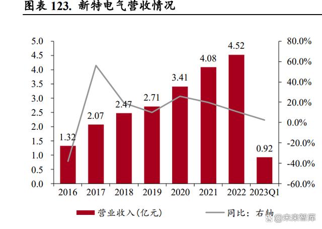 公司營收快速增長,變壓器是營收主力。公司 2016 年的營收為 1.32 億元,2022 年營收已達 4.52 億 元,復合增長達 22.72%,呈現(xiàn)高速增長的態(tài)勢。分產(chǎn)品來看,公司變壓器是公司營收的絕對主力, 長期營收占比在 90%以上。