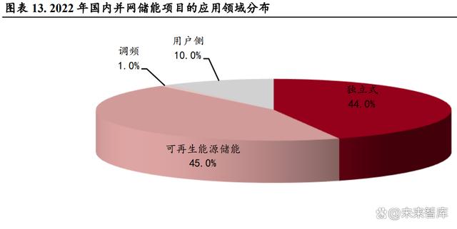 我國作為世界第一大儲能市場,應用場景主要集中在發(fā)電側和電網(wǎng)側。從 2022 年已并網(wǎng)項目的應用 領域來看,可再生能源儲能項目和獨立式儲能項目貢獻了絕大多數(shù)增量,分別占比達 45%和 44%, 用戶側儲能項目僅占比 10%,但其中還包括 3 個 10 小時鉛炭儲能項目。