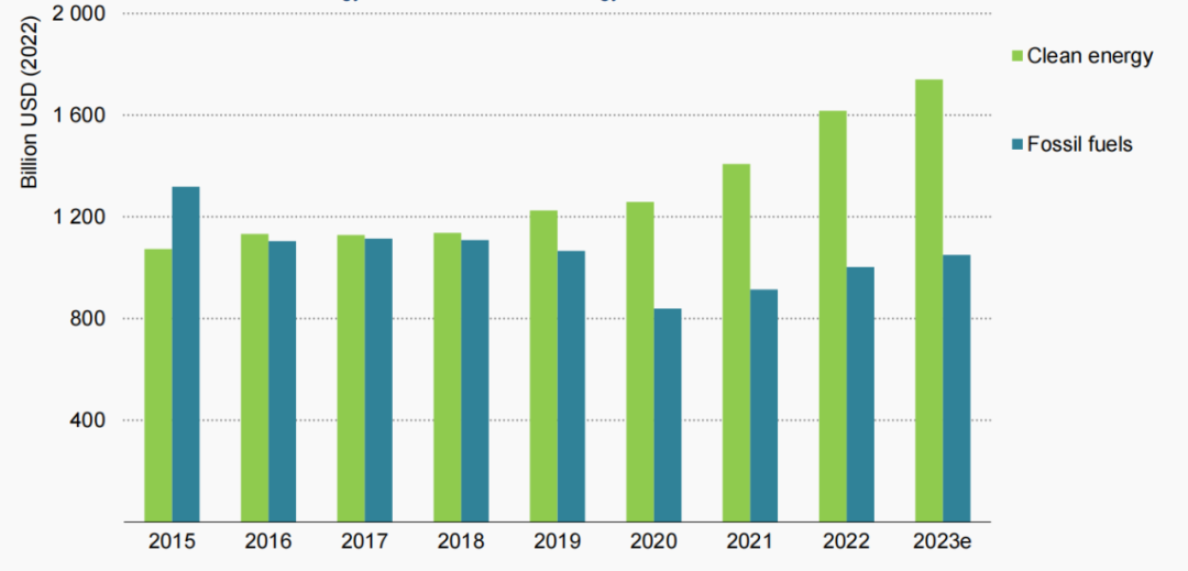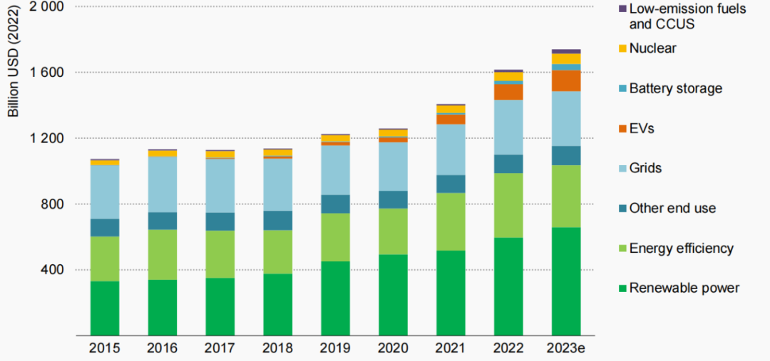 圖2 2015—2023年全球清潔能源投資情況 (來(lái)源:IEA)