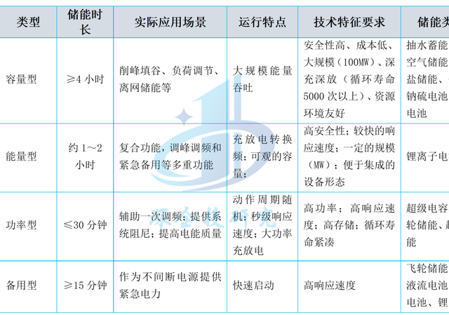 按照時(shí)長(zhǎng)要求的不同,儲(chǔ)能的應(yīng)用場(chǎng)景可分為容量型(≥4小時(shí))、能量型(約1~2小時(shí))、功率型(≤30分鐘)和備用型(≥15分鐘)四類,對(duì)應(yīng)的應(yīng)用場(chǎng)景如下表所示。