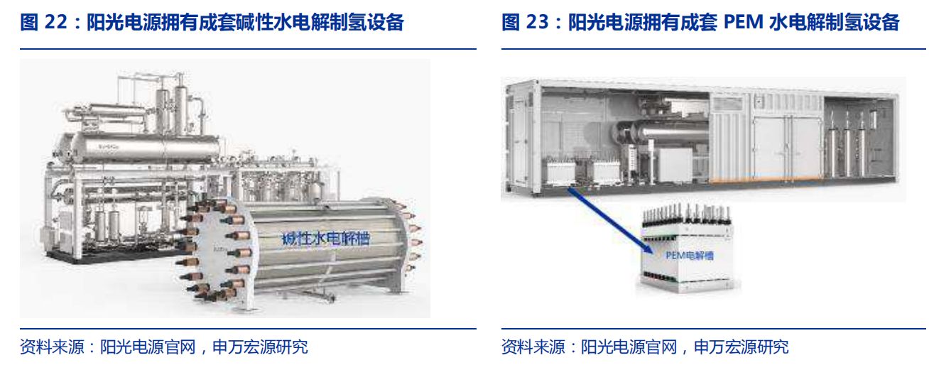 2)設(shè)備降本是氫能突圍的關(guān)鍵之一:當前氫能產(chǎn)業(yè)受成本制約,在無補貼情況下,氫價及燃料電池汽車成本高于鋰電及燃油車,其中設(shè)備在各環(huán)節(jié)中占比較高(根據(jù)我們測算,大安風(fēng)光制氫項目中電解槽占總投資成本24%;加氫站建設(shè)中設(shè)備成本占比71%;氫能重卡中燃料電池成本占比52%);因此通過政策推動及產(chǎn)業(yè)端的規(guī)模效應(yīng)實現(xiàn)設(shè)備降本,是氫能產(chǎn)業(yè)鏈提高經(jīng)濟效益,實現(xiàn)產(chǎn)業(yè)突破的關(guān)鍵;