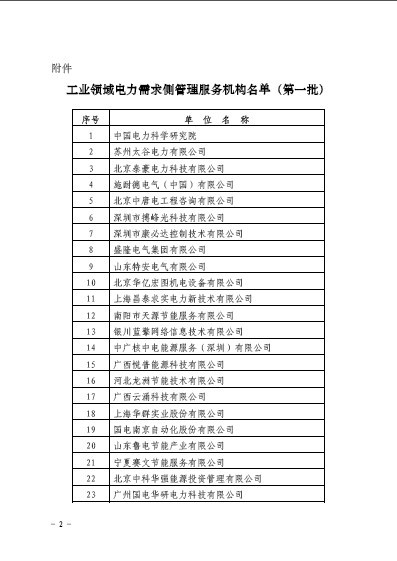 關于公布全國工業(yè)領域電力需求側(cè)管理服務機構(gòu)名單(第一批)的通知